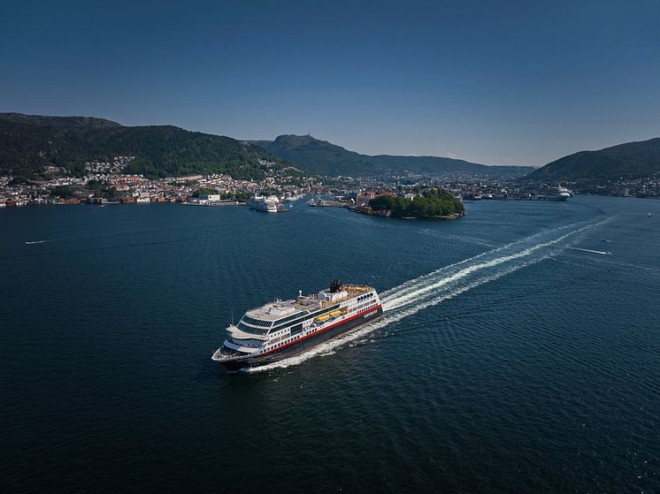 MS Trollfjord på vei ut fra Bergen. Foto: Espen Mills / Hurtigruten