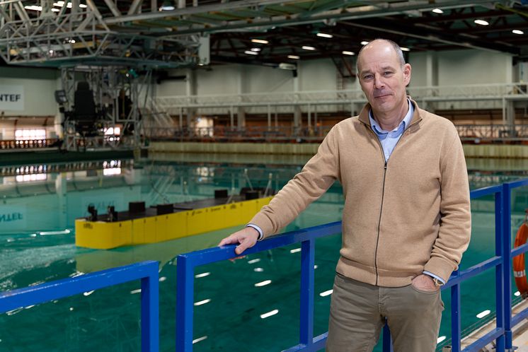 Driftsdirektør Gerry Larsson-Fedde i Hurtigruten under tester av Sea Zero-konseptet i havbassenget på Sintef. Foto: Espen Mills / Hurtigruten