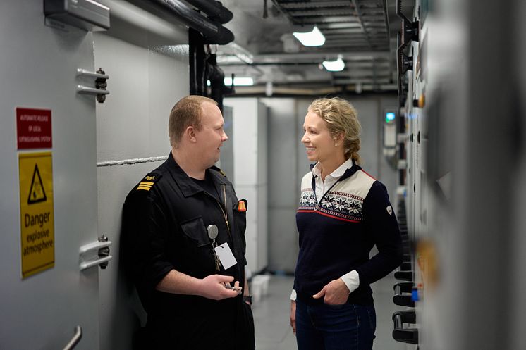 Administrerende direktør i Hurtigruten, Hedda Felin, ombord MS Richard With. Foto: Max Emanuelson / Hurtigruten