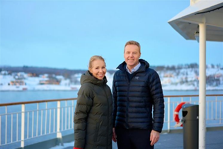 Hedda Felin (CEO) og Per Rasmussen (CFO). Foto: Max Emanuelson / Hurtigruten