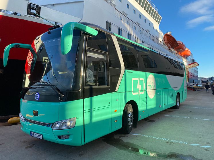 Tide og Hurtigruten Norges nye elektiske turbuss i Ålesund.