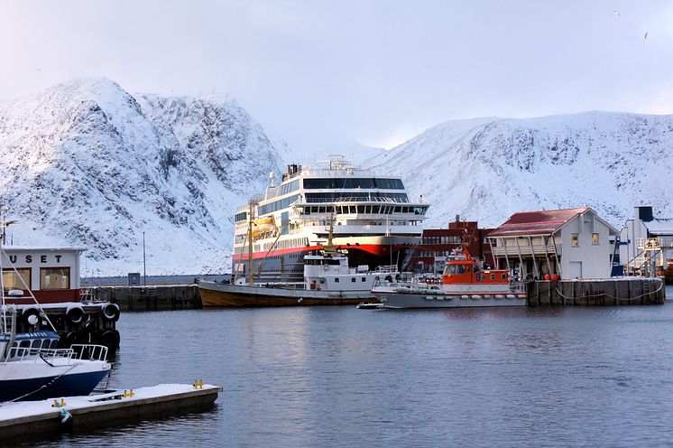 MS Trollfjord til kai i Honningsvåg i Finnmark. Foto: Hurtigruten
