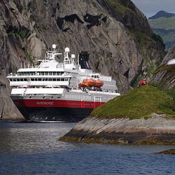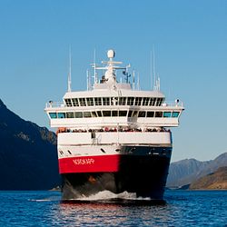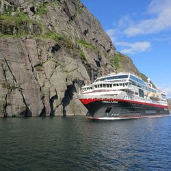 • MS Richard With i Svartsundet, like ved Trollfjorden i Nordland. Foto: Espen Mills / Hurtigruten
